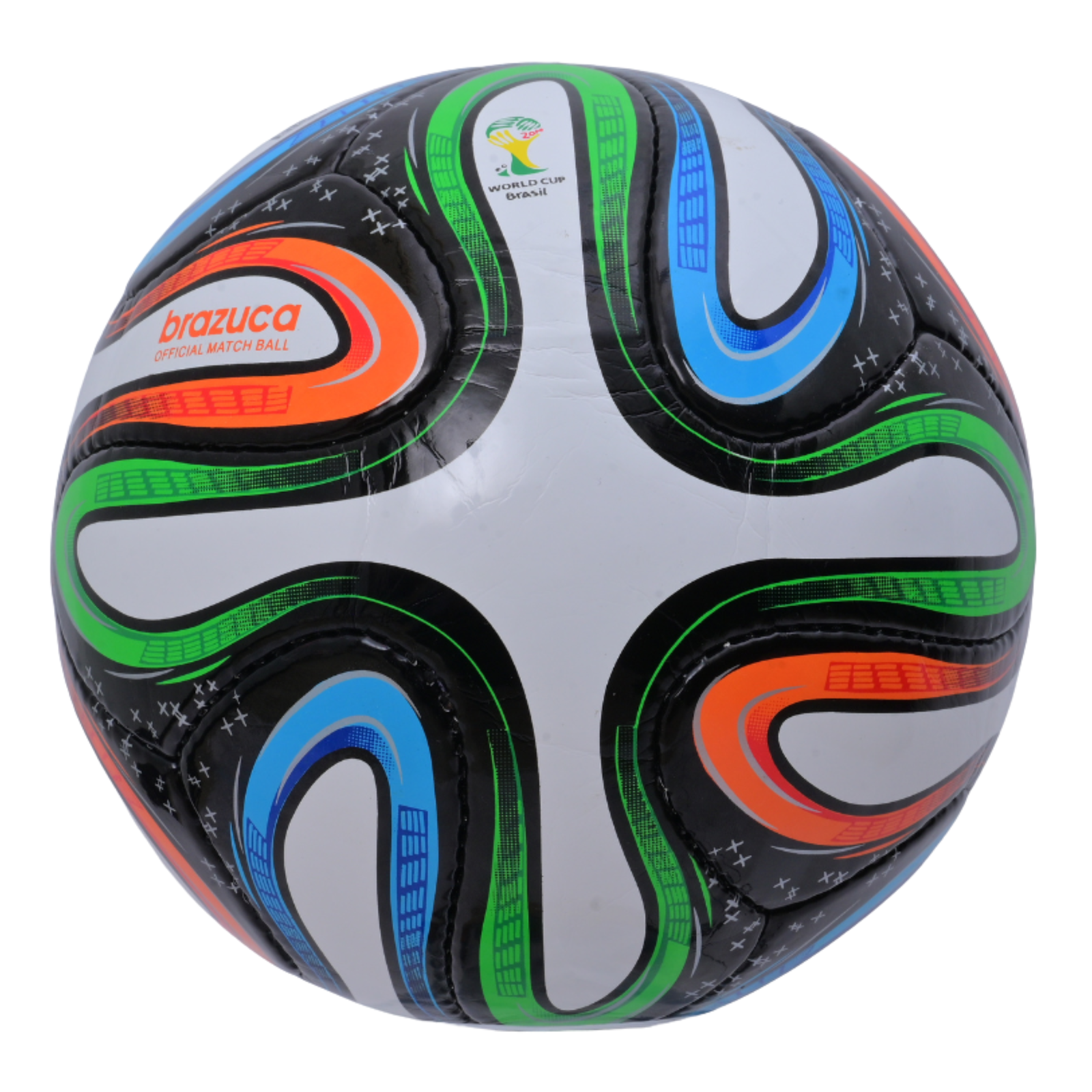 A++ Quality craftsmanship defines this World Cup Brazil 2014 inspired soccer ball, designed in official Size 5 for excellent performance and visual appeal. The bold multicolor panel design gives this football a modern, professional look inspired by the iconic Brazil tournament style.